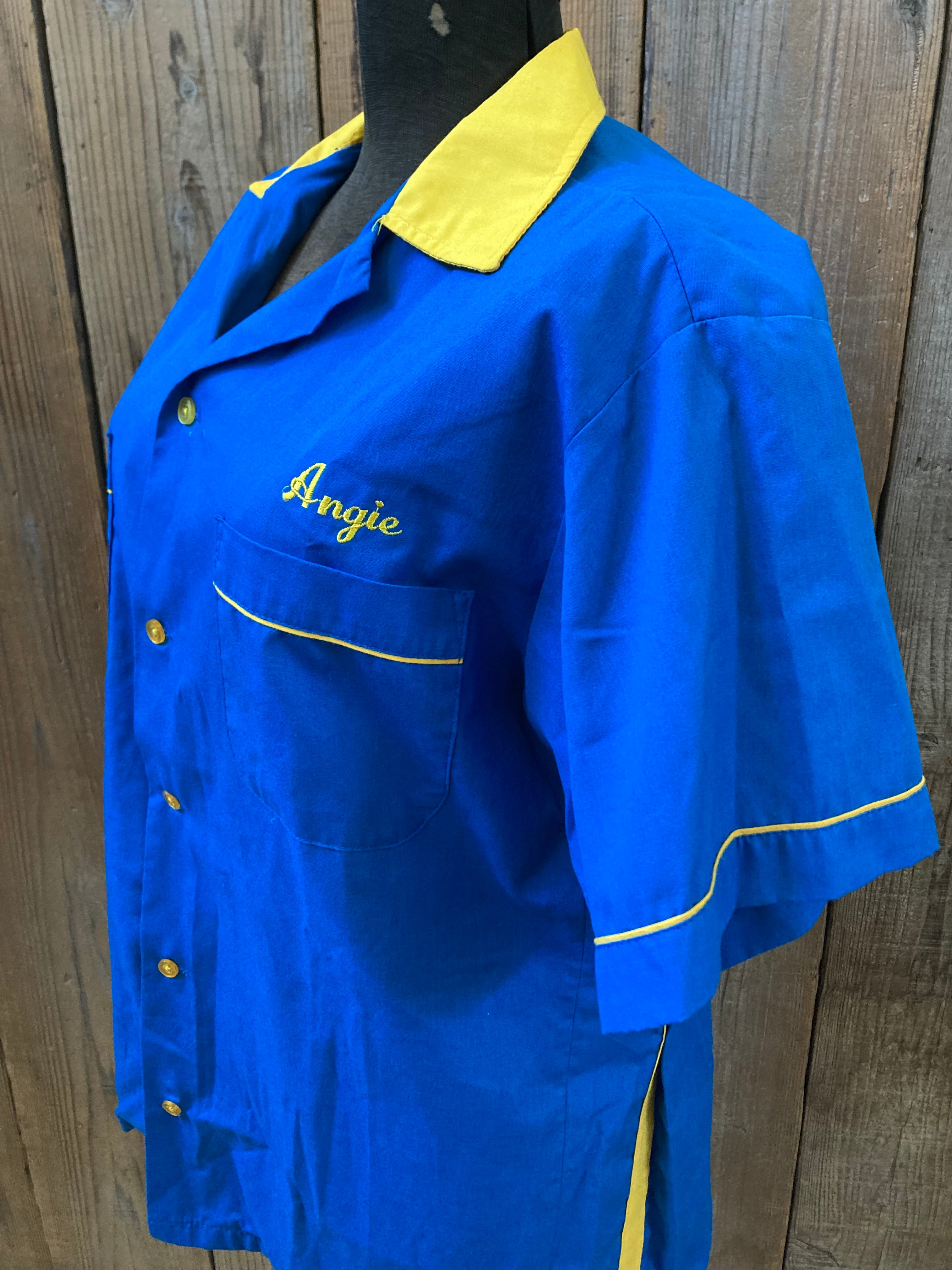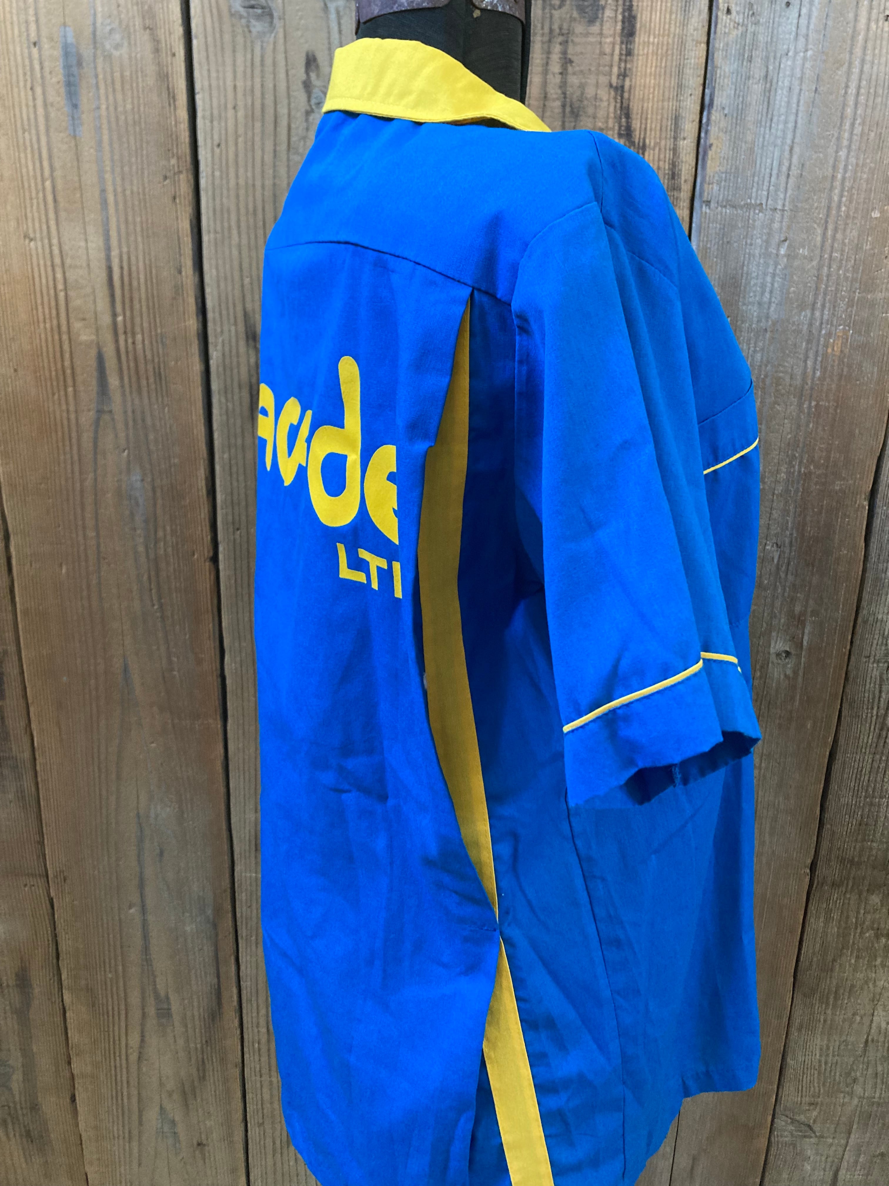 80s HILTON ボーリングシャツ ブルーxイエロー made in USA Mサイズ ヒルトン バイカラー
