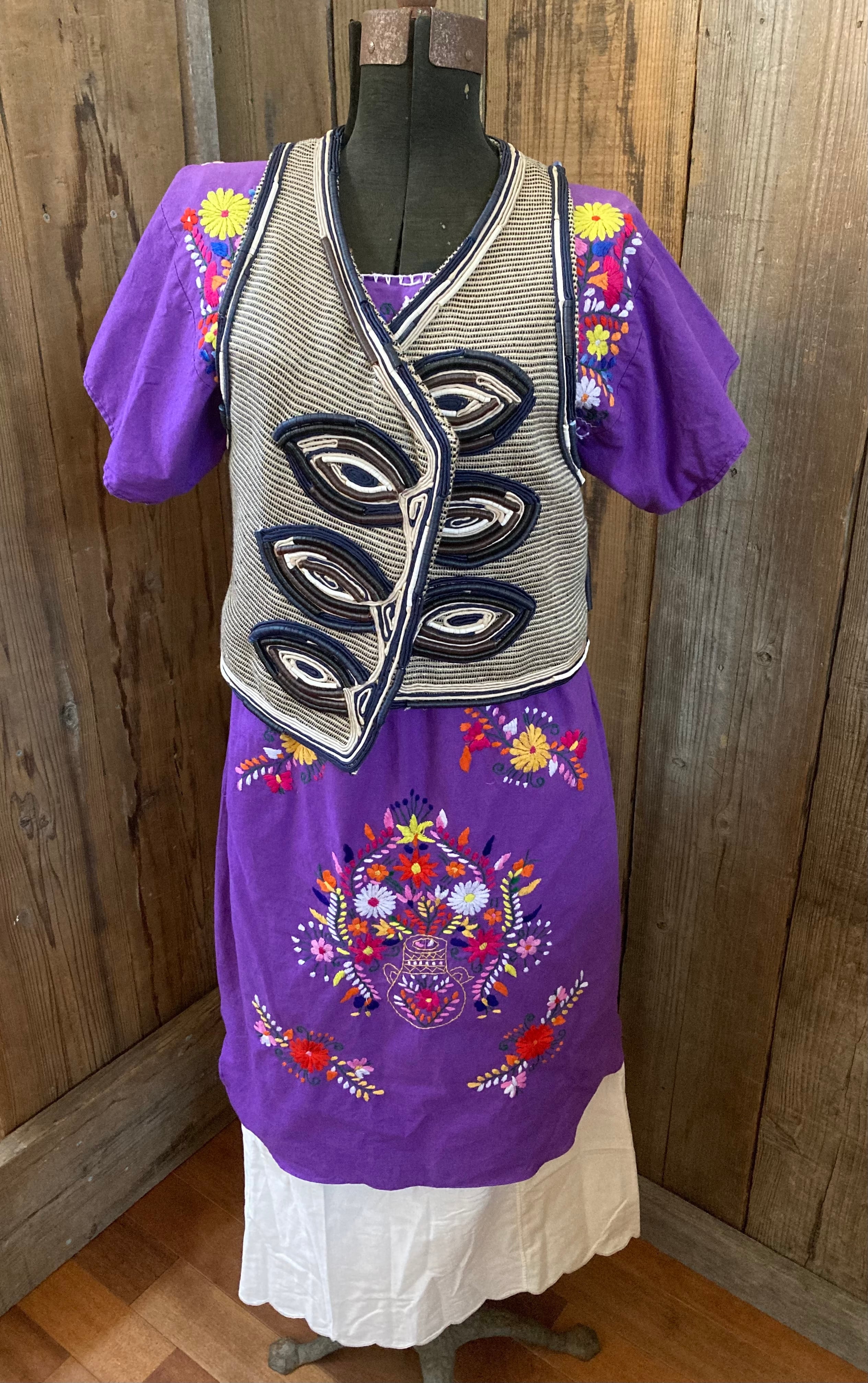 メキシカンワンピースとベストを合わせたスタイルを載せさせていただきました。