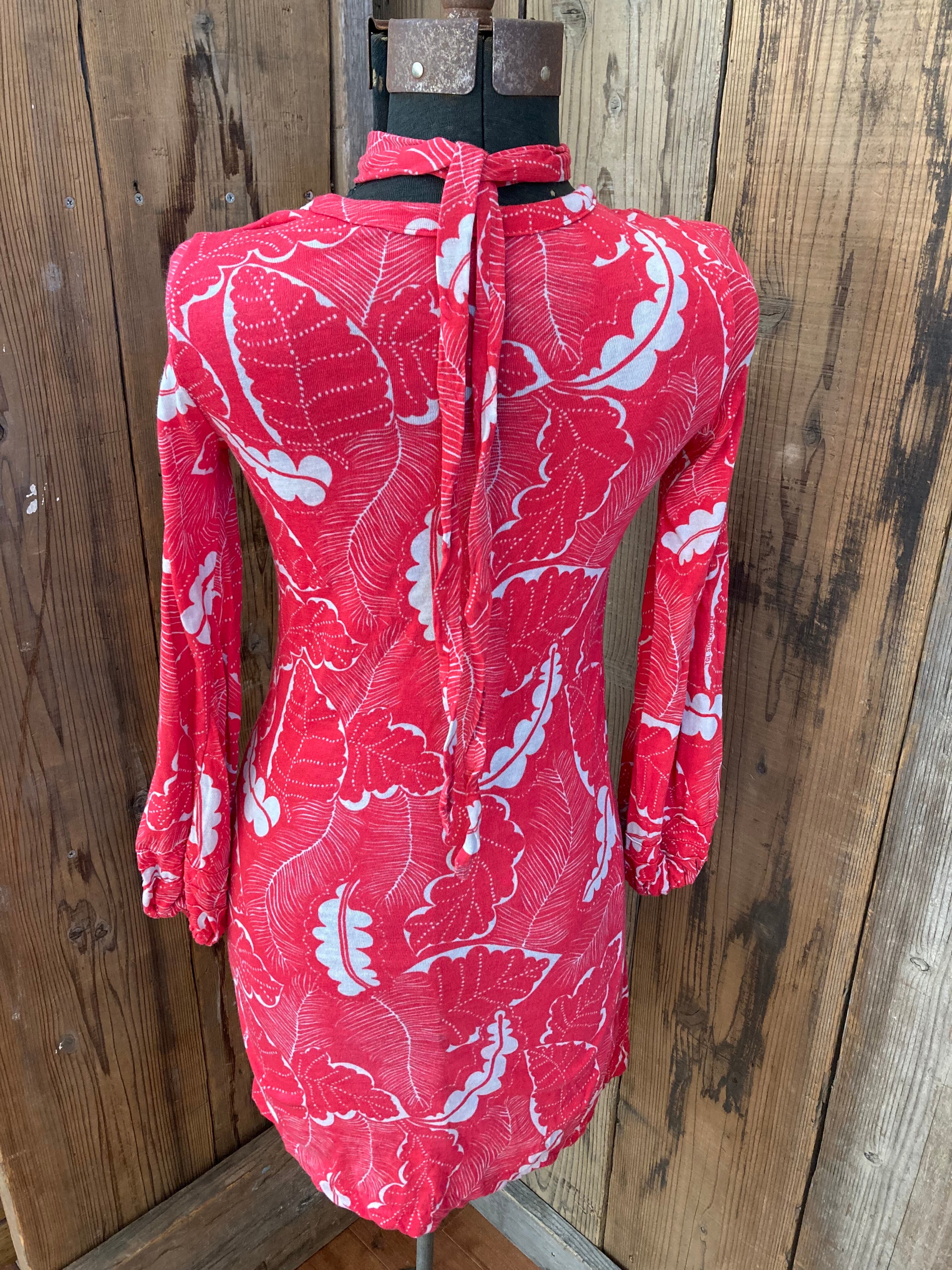 レトロな雰囲気たっぷりな北欧デザインのリーフ柄のヴィンテージワンピースです。