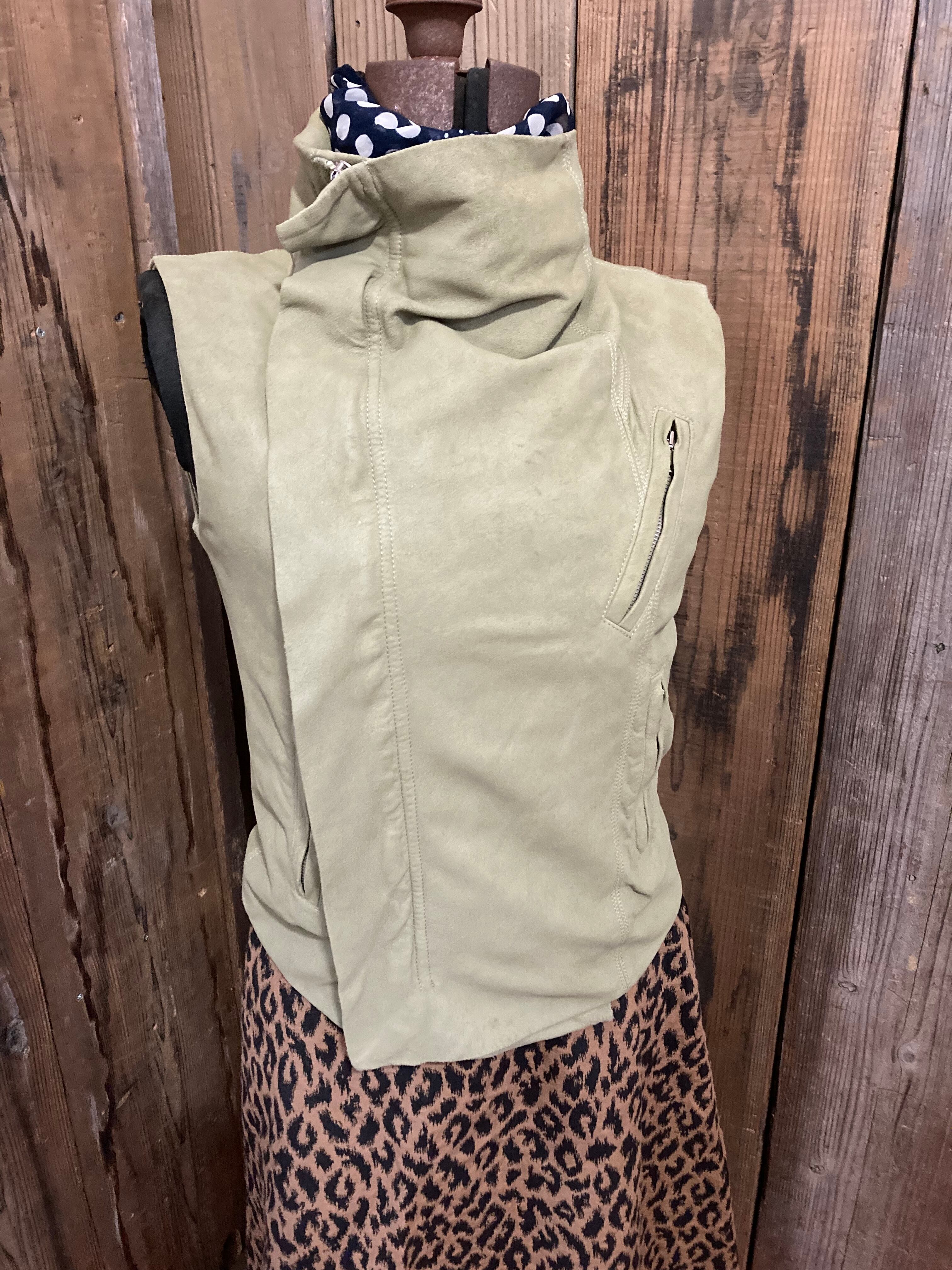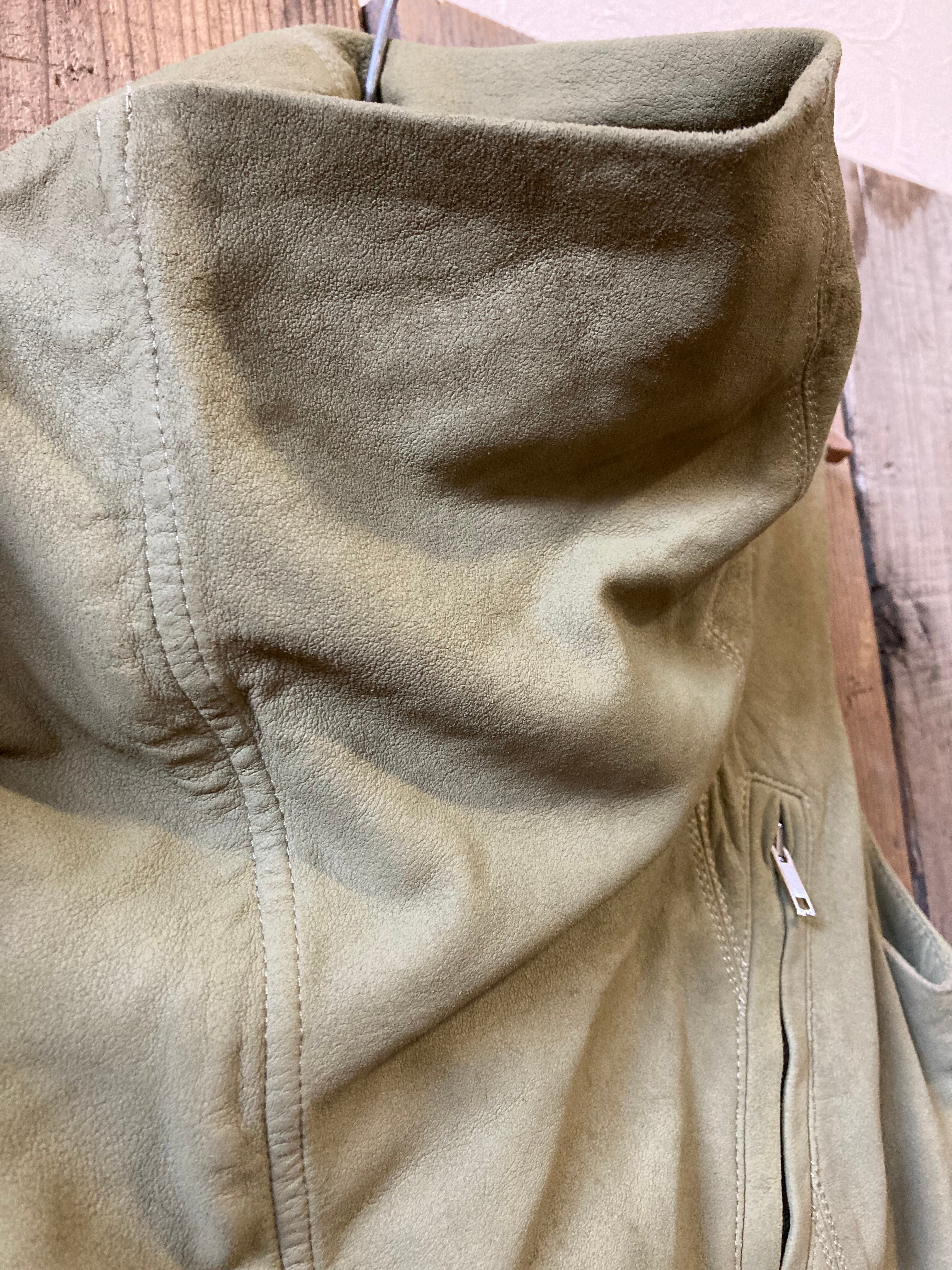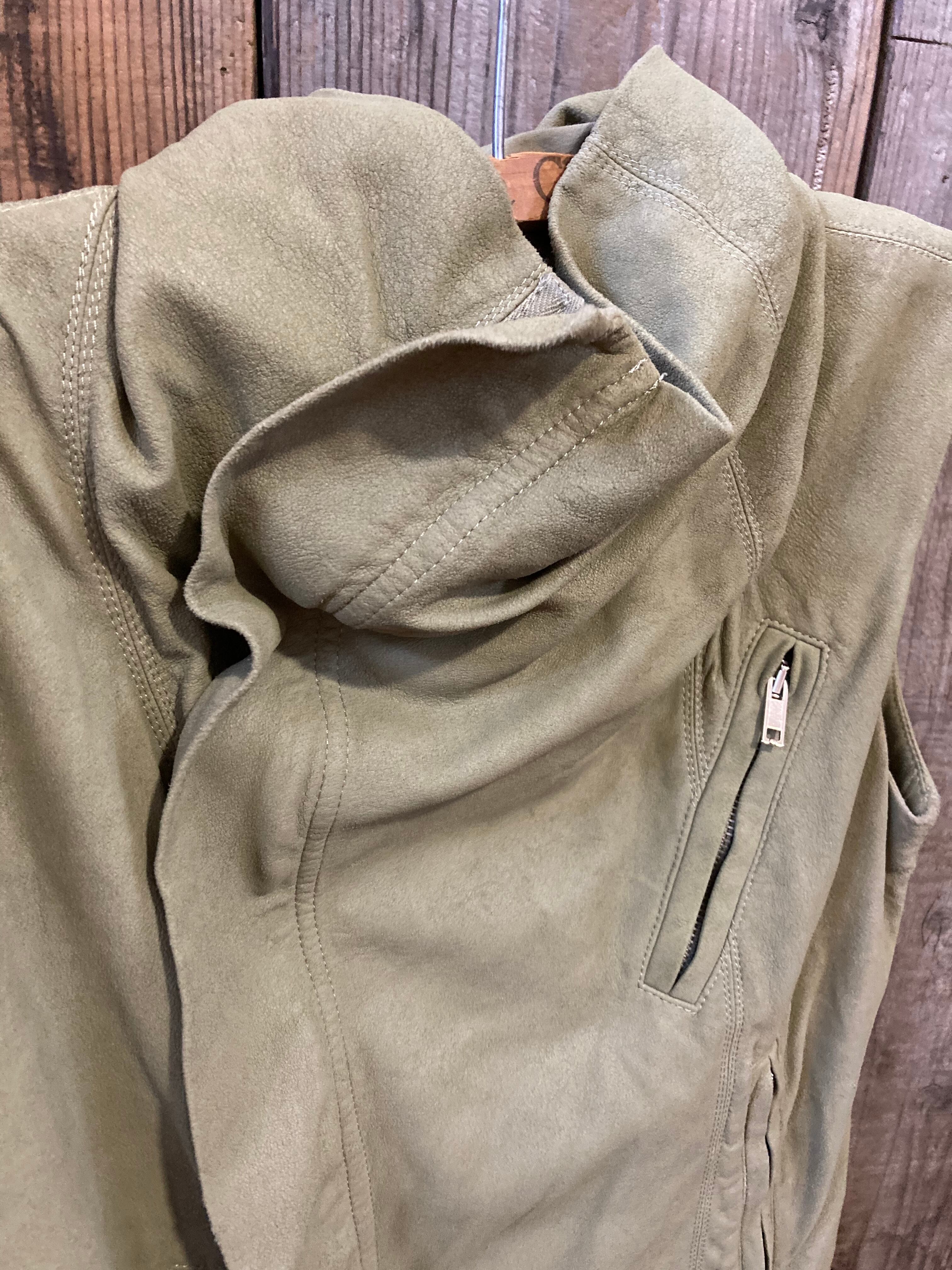 リックオウエンス レザーベスト バイカー 変形ベスト グリーン くすみカラー ラムレザー