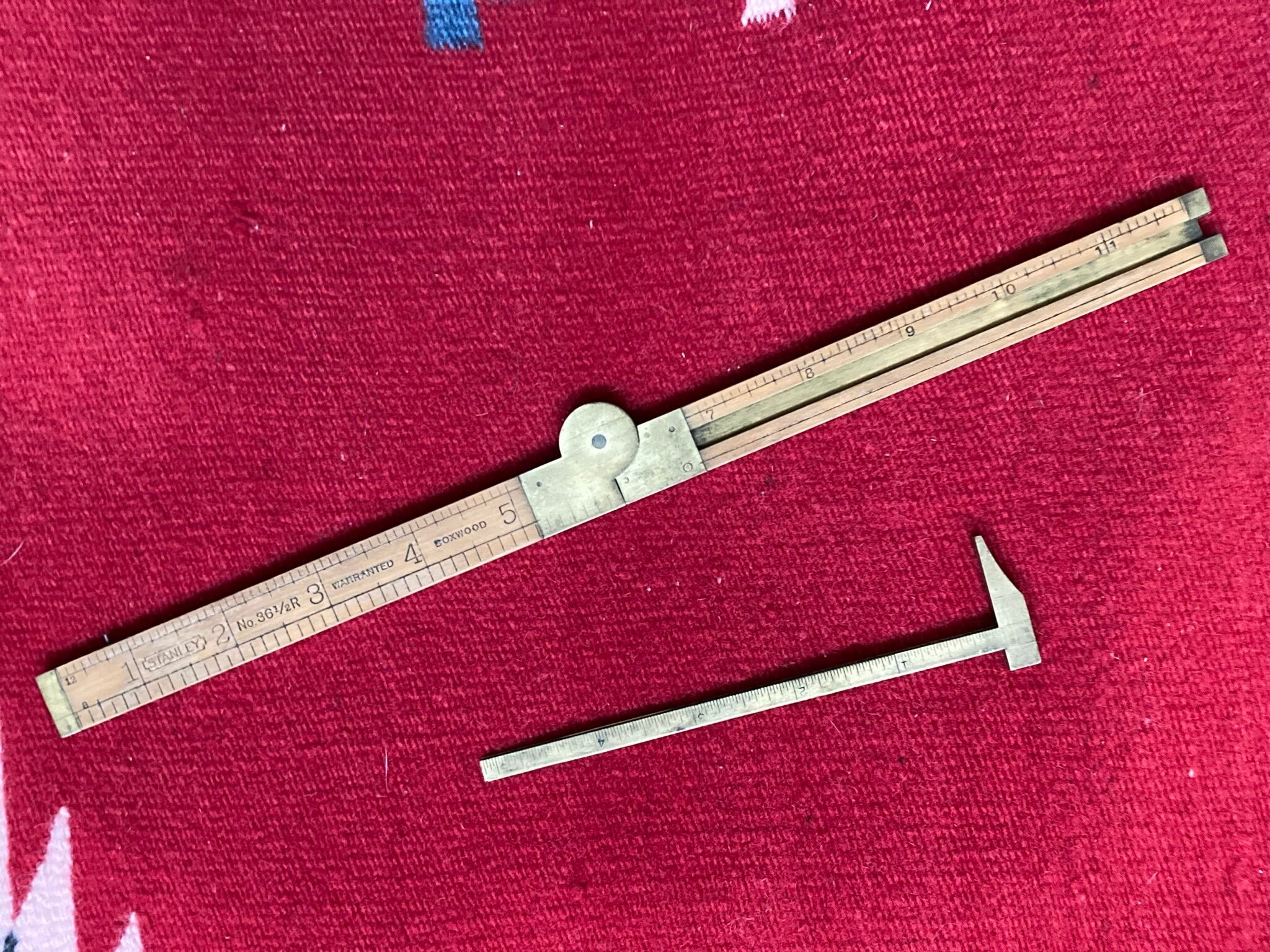 アンティーク 折りたたみ定規 スタンリー ノギス ブラス製 木製 made in USA