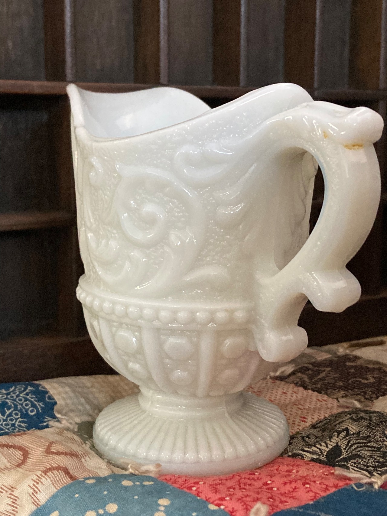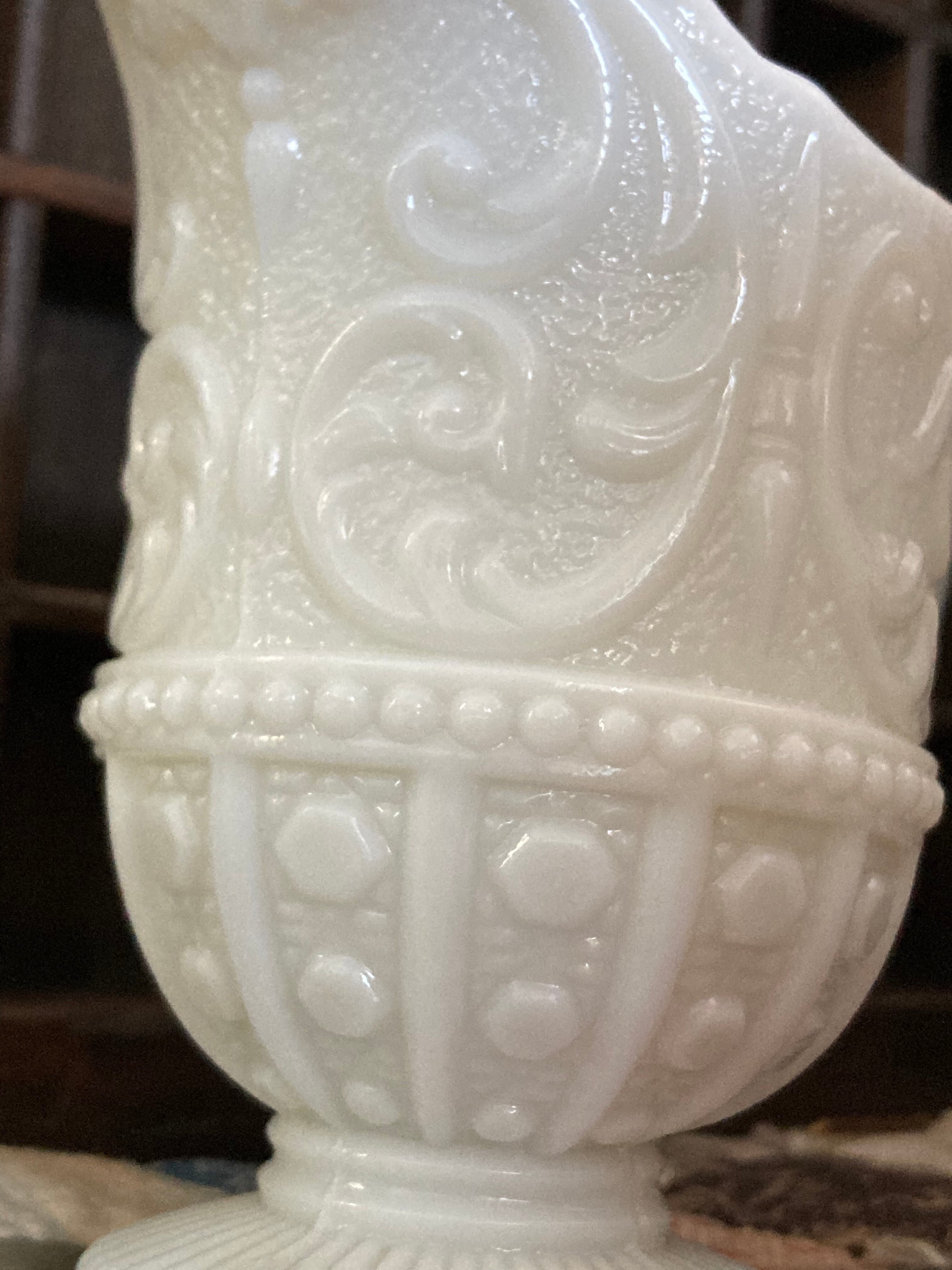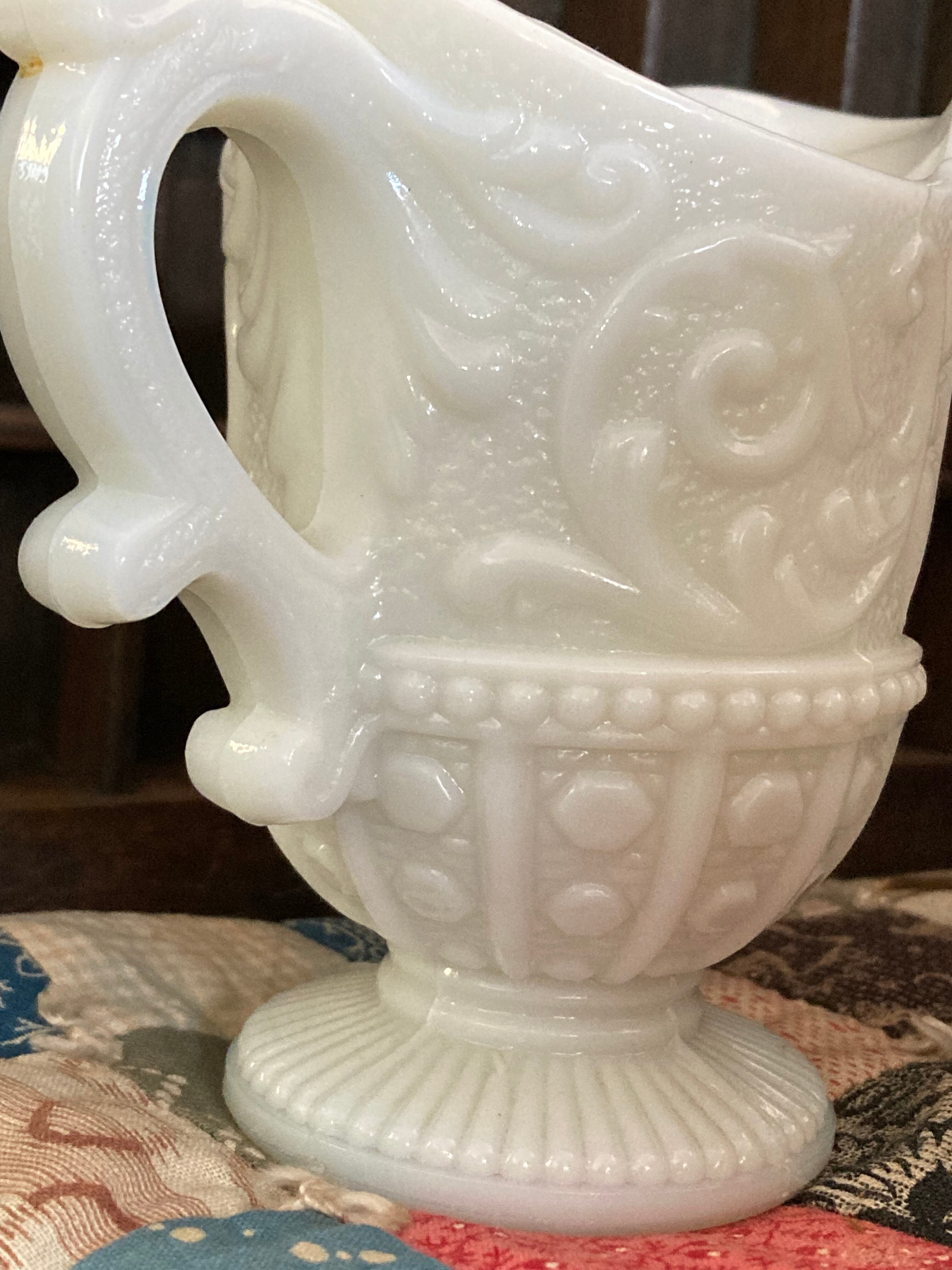 ヴィンテージ ミルクガラス 水差し ピッチャー 花瓶 花器 レリーフ ドット アラベスク調